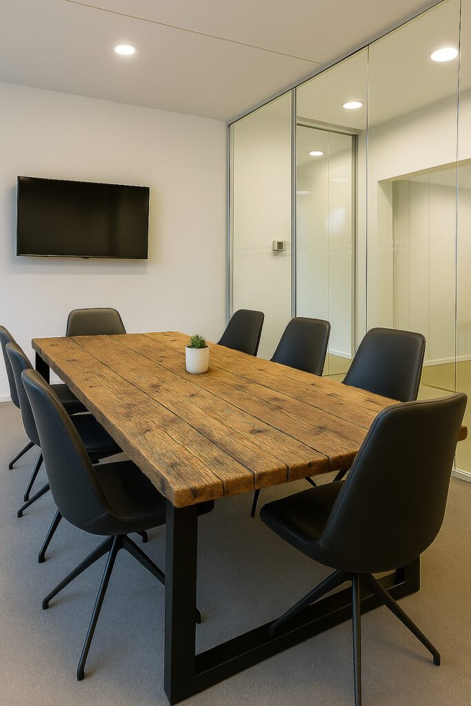 Ein Esstisch aus Altholzbohlen lässt sich problemlos als repräsentativer Konferenztisch einsetzen. In modernen Arbeitswelten sorgt er nicht nur für Stabilität und praktische Nutzung, sondern auch für eine Atmosphäre, die Kreativität und Teamgeist fördert. Als Konferenztisch mit einzigartiger Maserung wird er zum Symbol für Individualität und Beständigkeit – Eigenschaften, die viele Unternehmen heute gezielt in ihren Arbeitsumgebungen transportieren möchten.